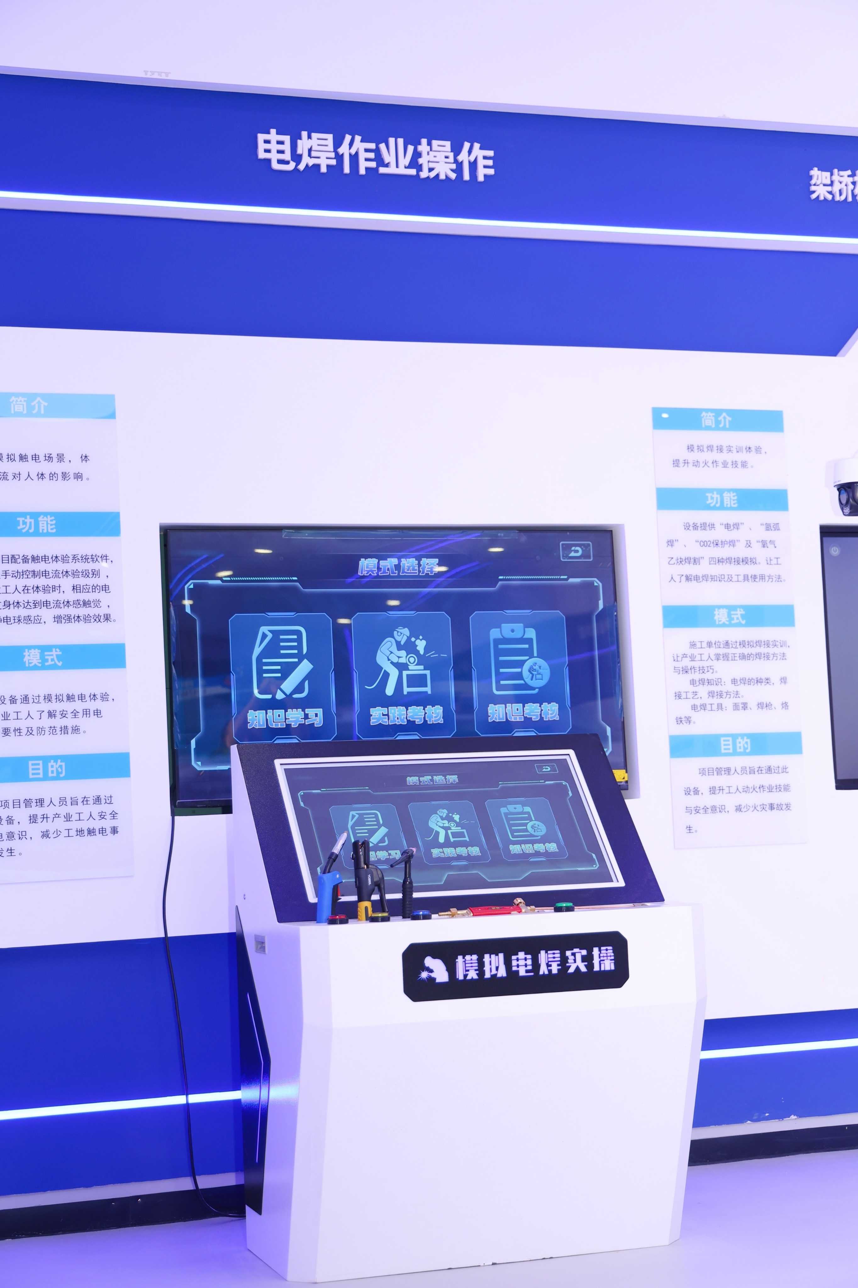 走進(jìn)智慧館,兼具科技感與實(shí)用性的場(chǎng)景令人印象深刻:線上管理平臺(tái)實(shí)時(shí)滾動(dòng)著工人培訓(xùn)記錄,線下移動(dòng)終端可在施工現(xiàn)場(chǎng)隨時(shí)開(kāi)展“微課堂”;在VR虛擬體驗(yàn)區(qū),工人戴上設(shè)備就能“親歷”高空墜落、機(jī)械碰撞等高危場(chǎng)景,在痛感與震感中強(qiáng)化安全意識(shí);在綜合用電體驗(yàn)區(qū),真實(shí)電流通過(guò)模擬裝置產(chǎn)生的酥麻感,讓安全用電從理論變成了切身體會(huì)。
