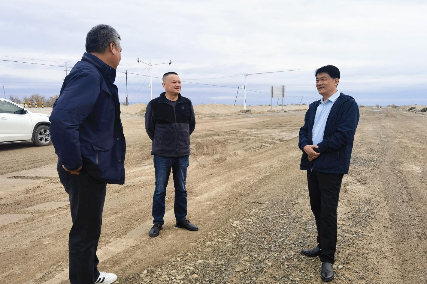 在呼圖壁項(xiàng)目,張保江一行深入施工現(xiàn)場(chǎng),詳細(xì)了解項(xiàng)目路基、橋梁、涵洞、路面等施工進(jìn)展情況。他強(qiáng)調(diào),今年以來,新疆雨水天氣增多,呼圖壁項(xiàng)目建設(shè)時(shí)間緊、任務(wù)重,要在確保工程質(zhì)量和施工安全的前提下,加快推進(jìn)項(xiàng)目建設(shè)。